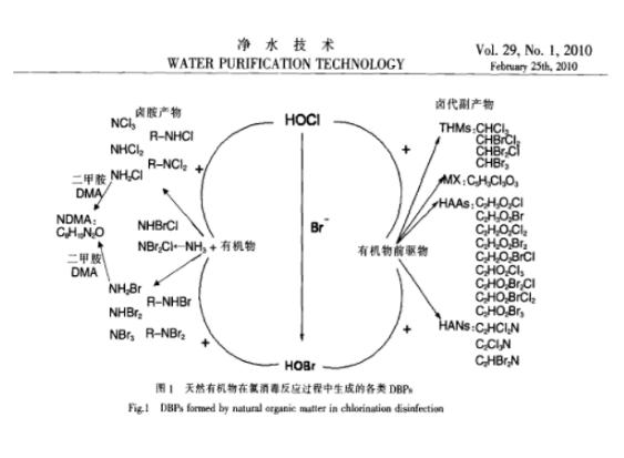 看起來我們只是做了一步消毒,實際上天然有機物在氯消毒反應過程中發(fā)生了什么?下面這張圖一看,就一目了然了。