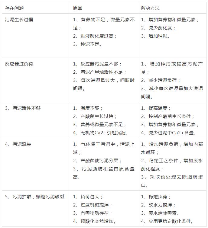 4、負(fù)荷增加操作方式:?jiǎn)?dòng)初期容積負(fù)荷可從0.2-0.5kgCOD/m3·d開始,當(dāng)生物降解能力達(dá)到80%以上時(shí),再逐步加大。若最低負(fù)荷進(jìn)料,厭氧過程仍不正常COD不能消化,則進(jìn)料間斷時(shí)間應(yīng)延長(zhǎng)24h或2-3d,檢查消化降解的主要指標(biāo)測(cè)量VFA濃度,啟動(dòng)階段VFA應(yīng)保持在3mmoL/L以下。